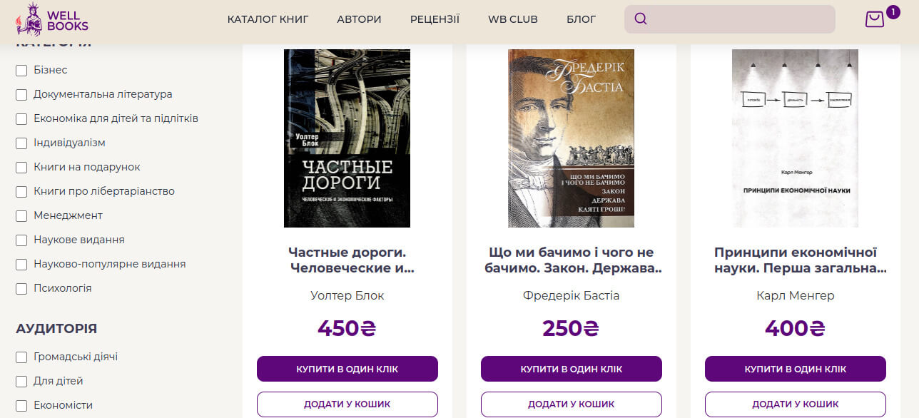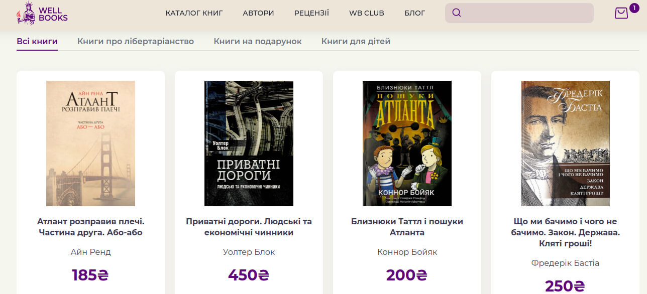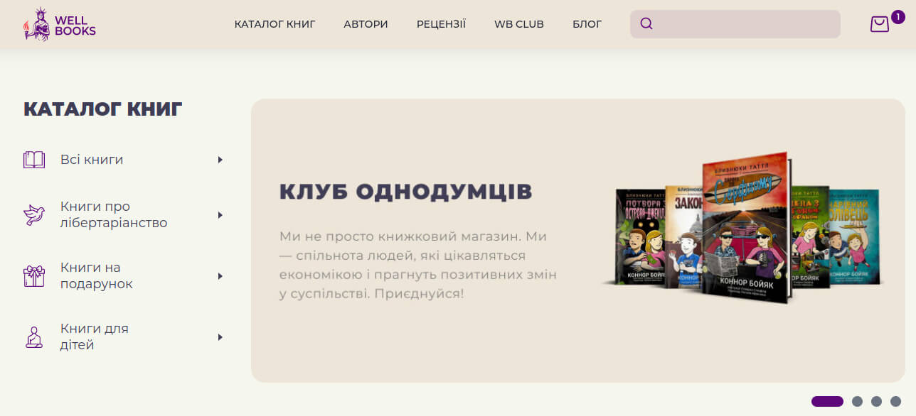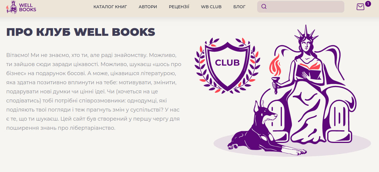 Ще один книжний інтернет-магазин? Не зовсім. Скоріше — спільнота однодумців та приватний (хочеться написати «привітний») клуб для тих, хто цікавиться економікою та хоче дізнатися більше про вільні економічні погляди. Сайт WELL BOOKS увійшов на досить перенасичений онлайн-ринок книг України з цікавою ідеєю та вдалим позиціюванням. І — на суб’єктивний погляд — вже на старті має всі складові для успішного зростання.
